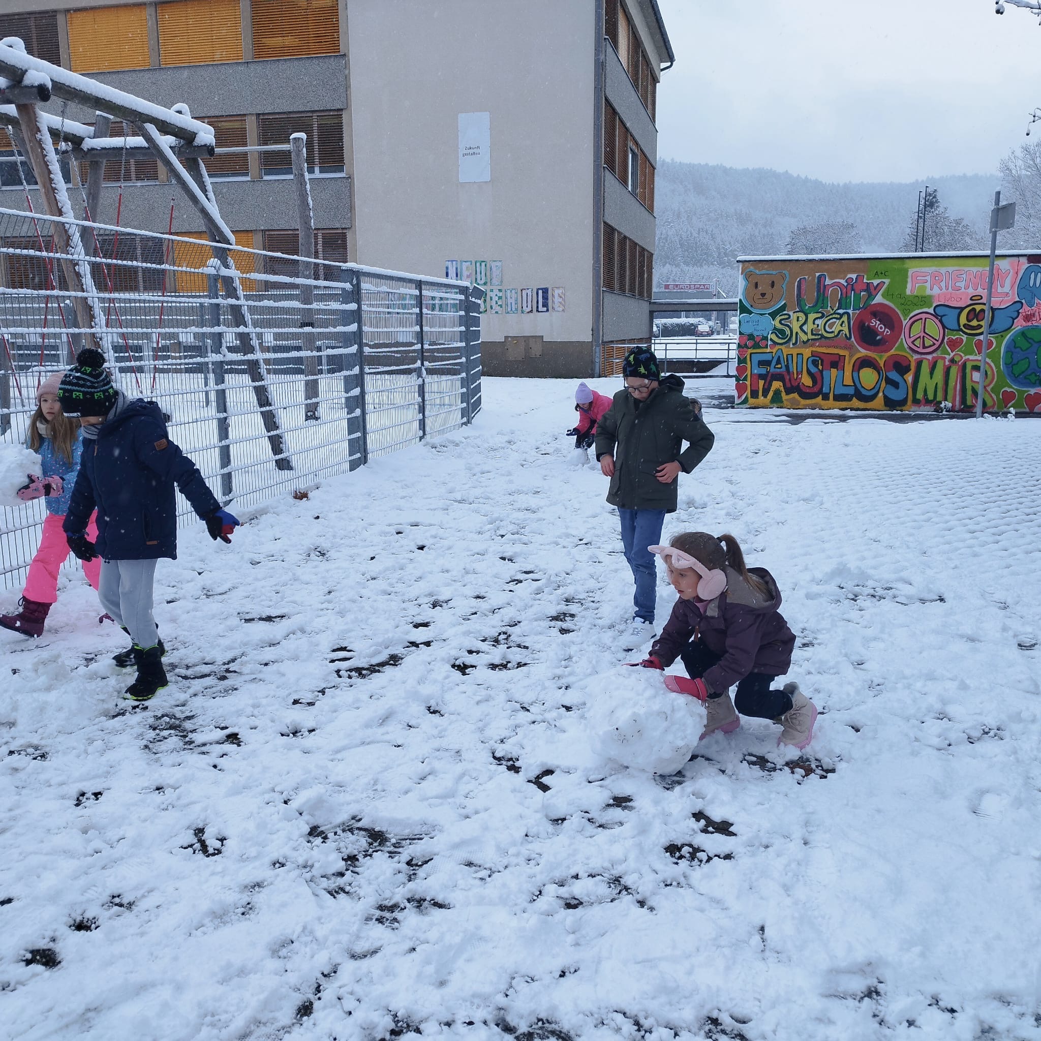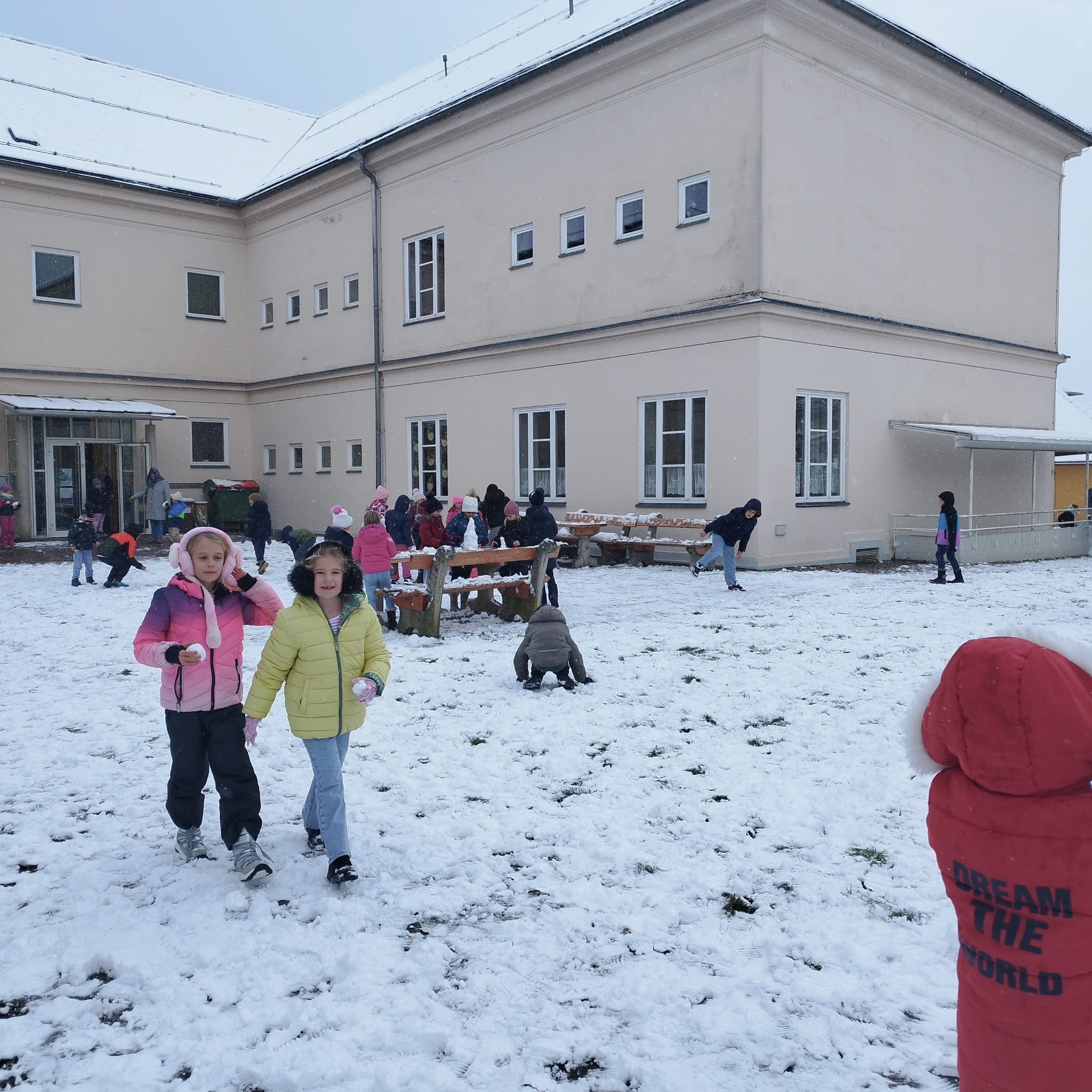 „Der erste Schnee in diesem Jahr – und unsere Kinder haben sichtlich Spaß daran!“