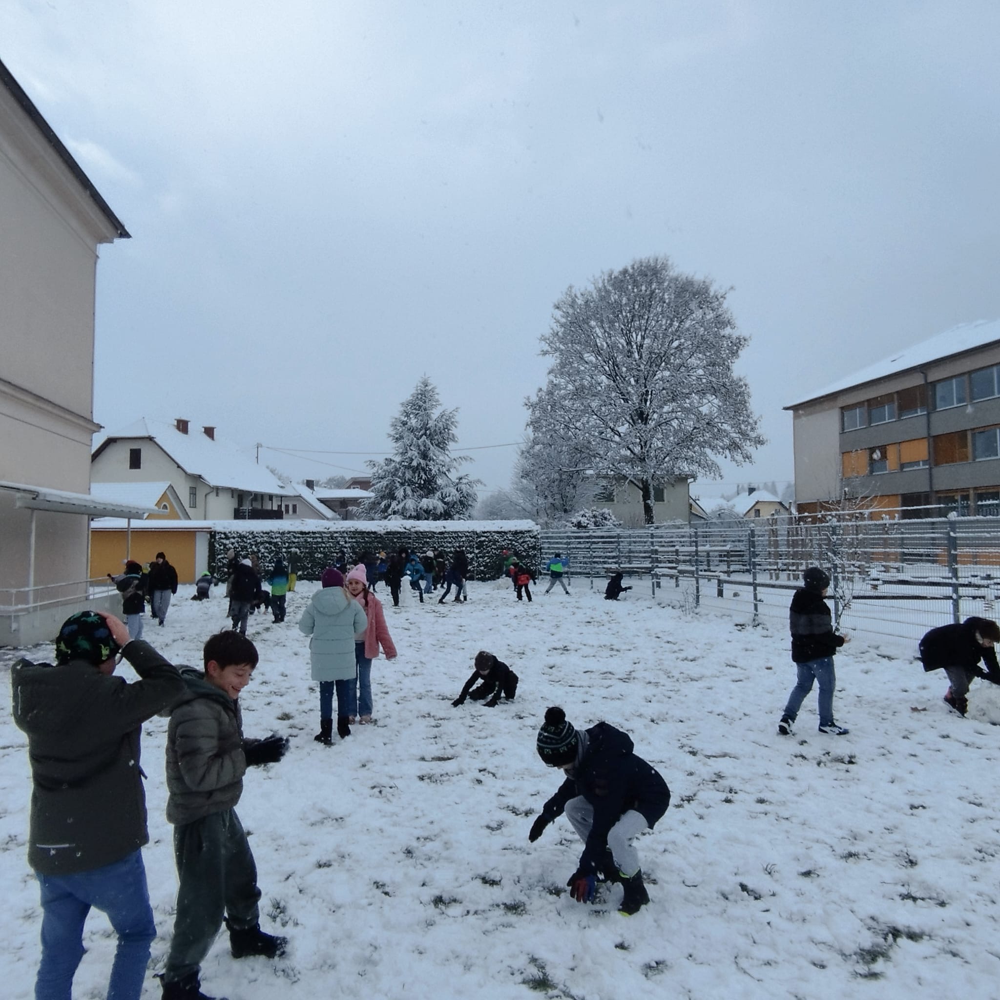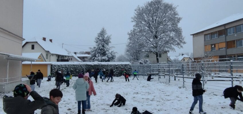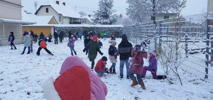 „Prvi sneg v tem letu – in naši otroci se ob tem vidno zabavajo!“