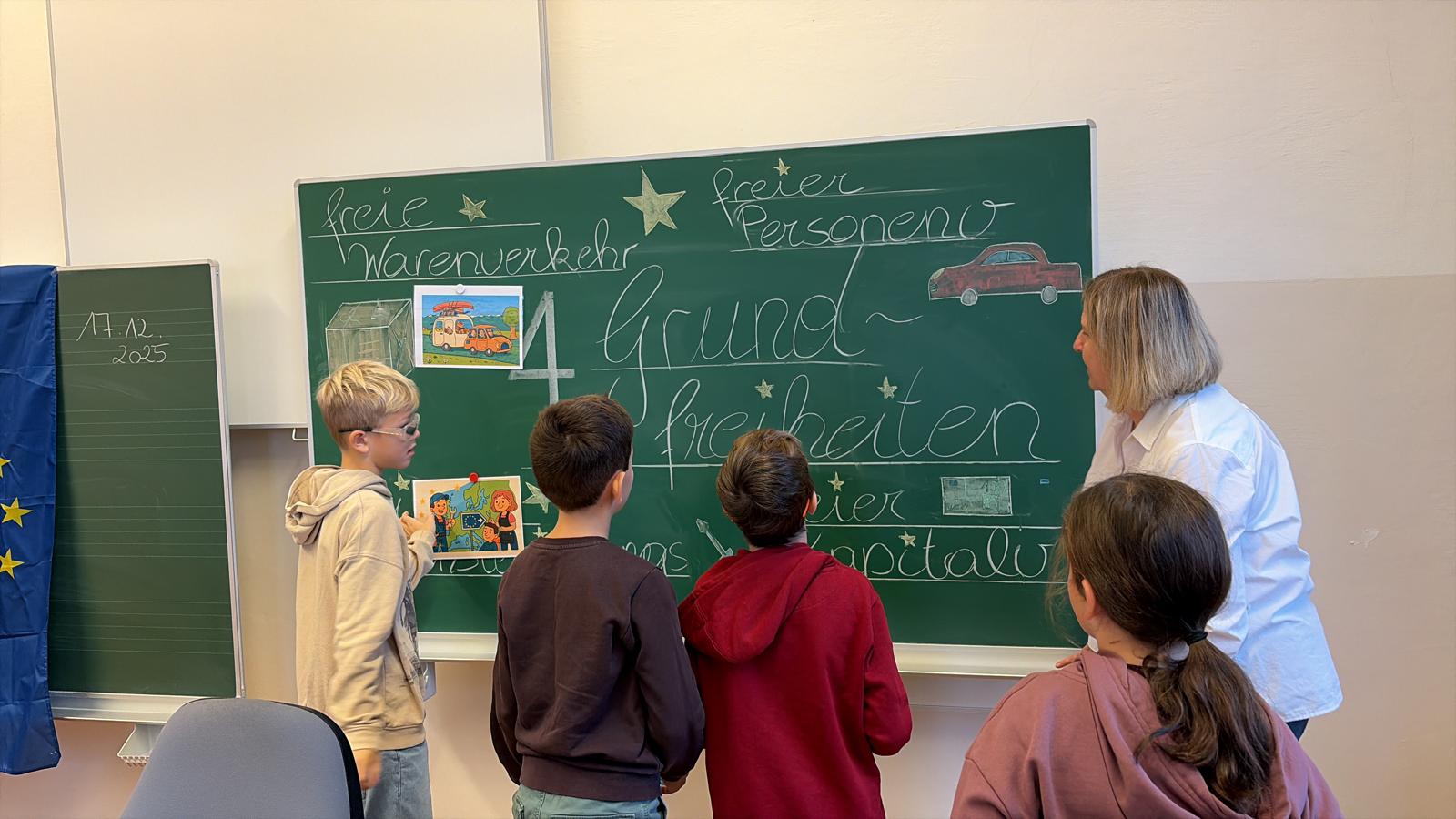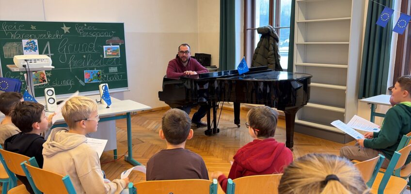 Das Stiftsgymnasium St. Paul ist Botschafterschule des EU-Parlamentes. Mit viel Engagement haben die Junior-Botschafterinnen und -Botschafter (Schülerinnen und Schüler der 6. und 7. Klassen) einen Workshop gestaltet, in dem die Europäische Union im Stationenbetrieb anschaulich und kindgerecht vermittelt wurde. Unsere 4b Klasse durfte daran teilnehmen. Der Besuch war spannend, herzlich und hervorragend organisiert – wir haben uns rundum wohlgefühlt. Ein herzliches Dankeschön!